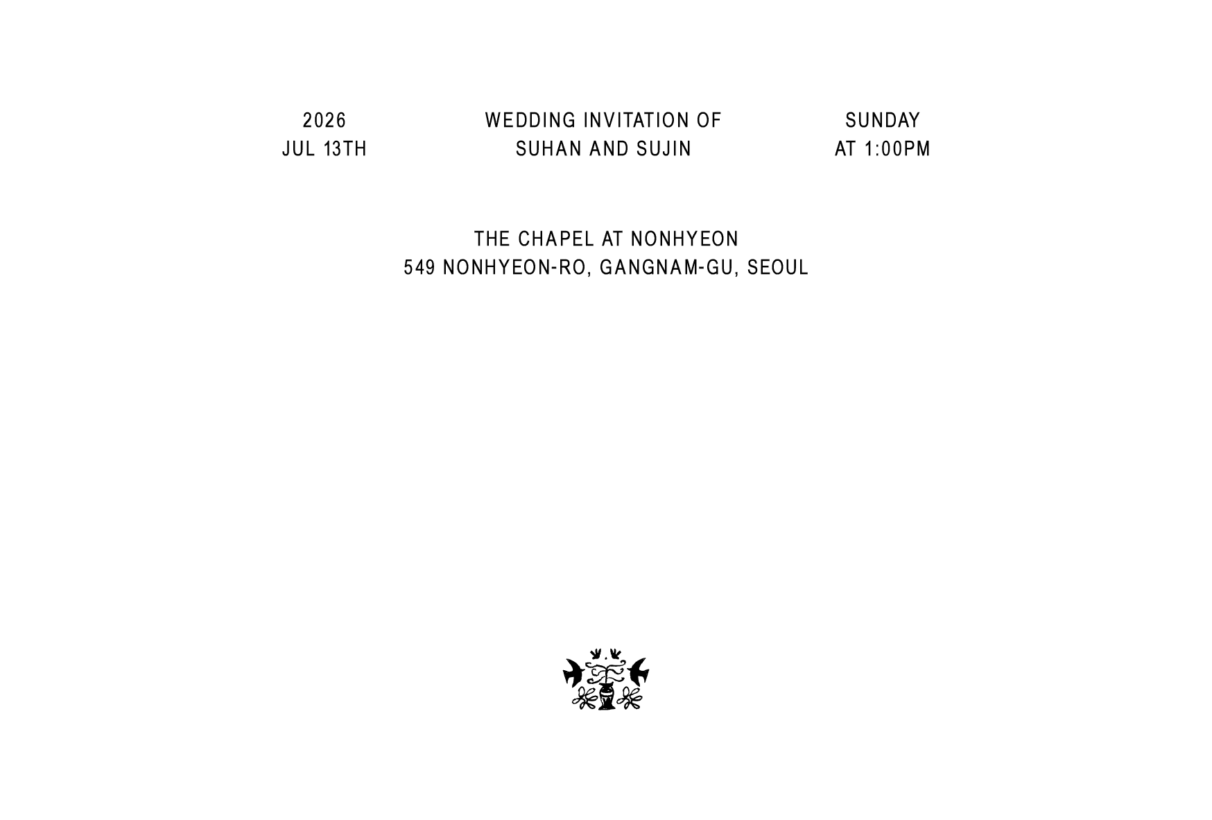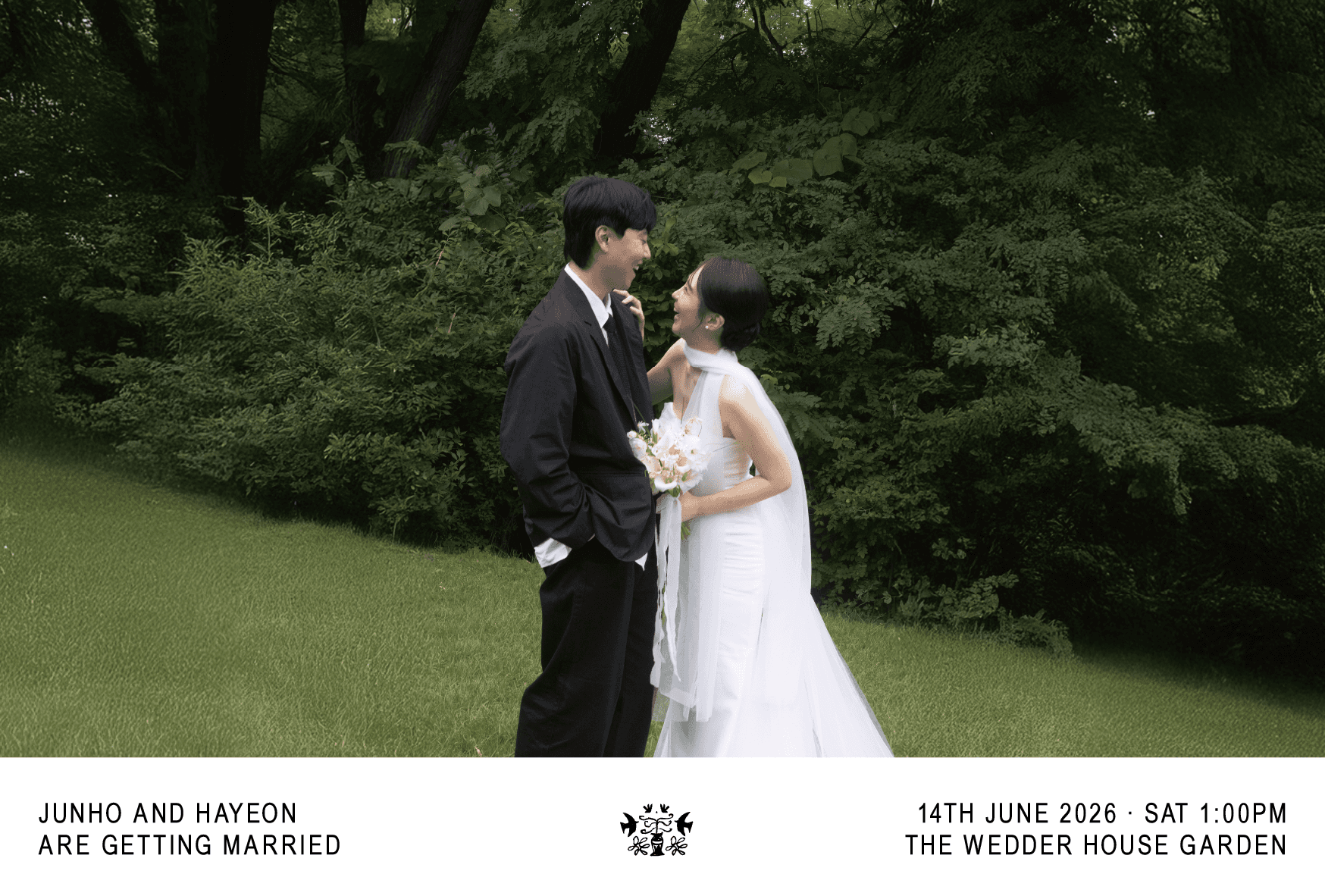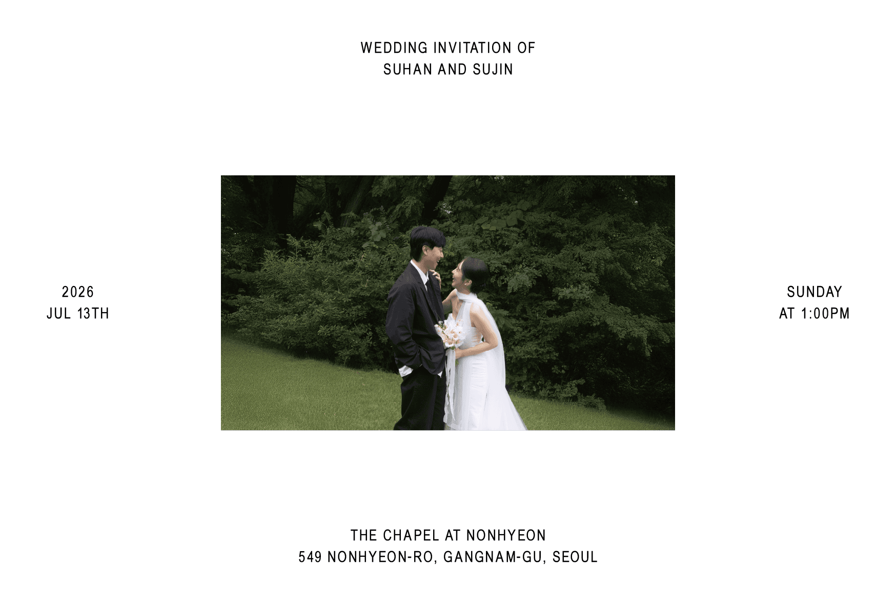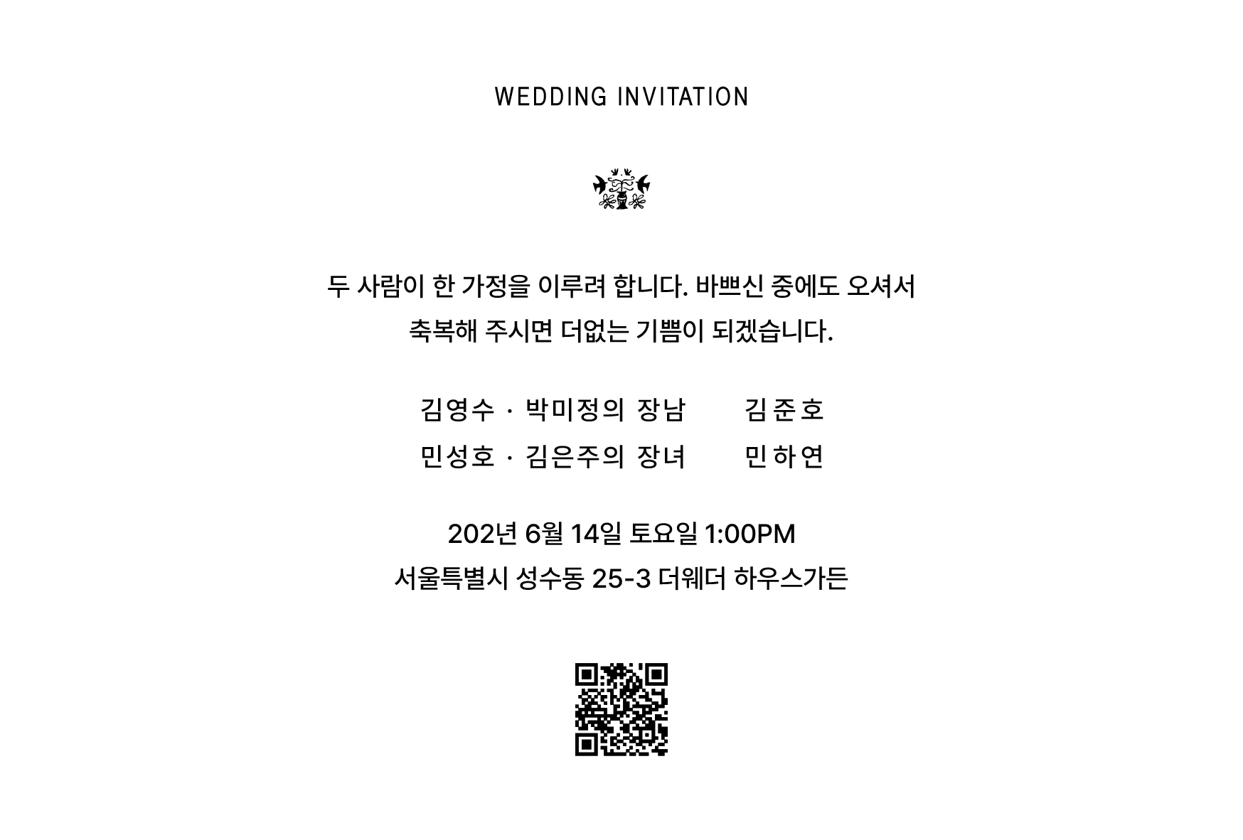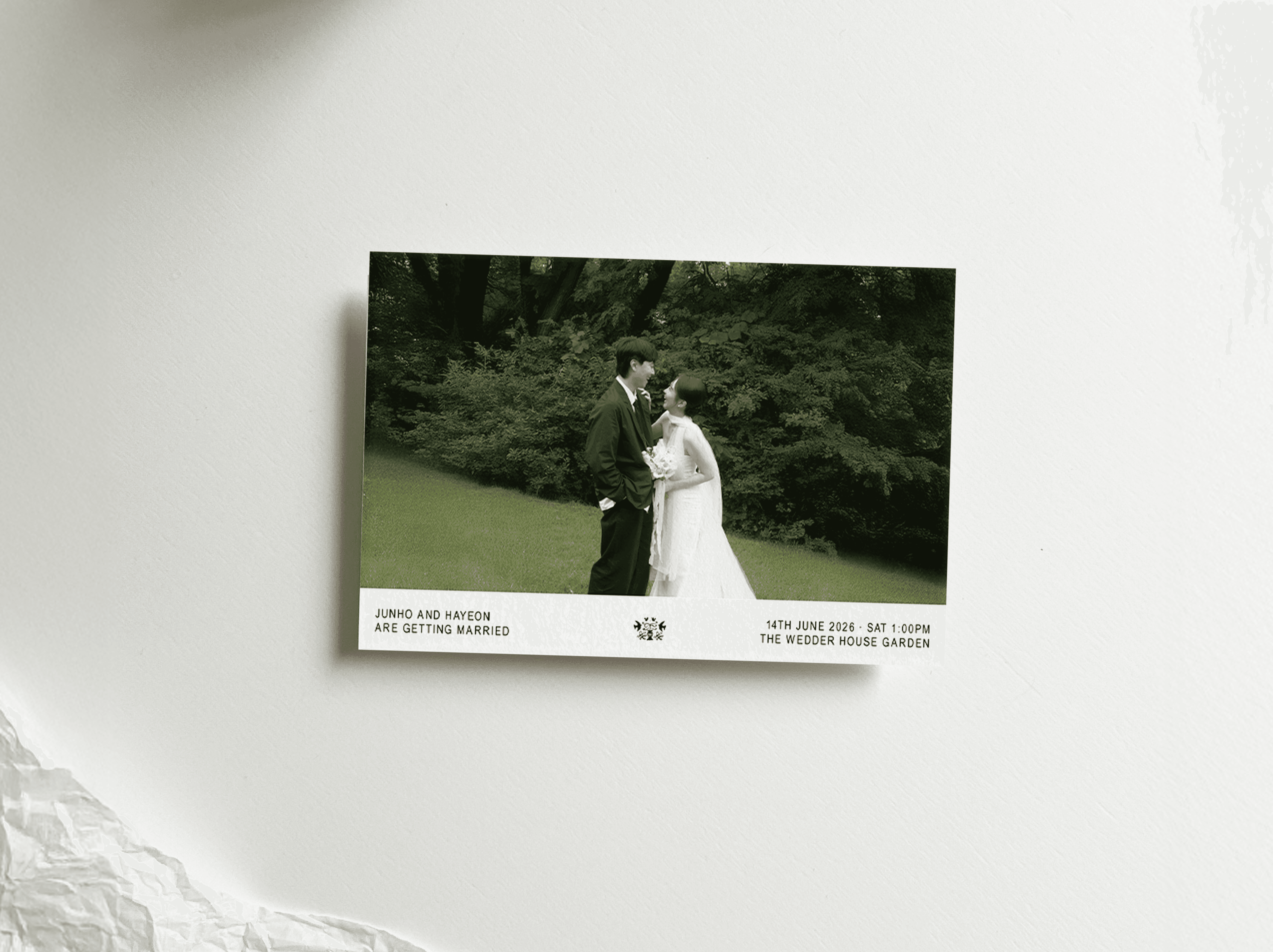 필요한 정보만 깔끔하게 담은 더웨더9 기본 엽서형 청첩장 입니다.
