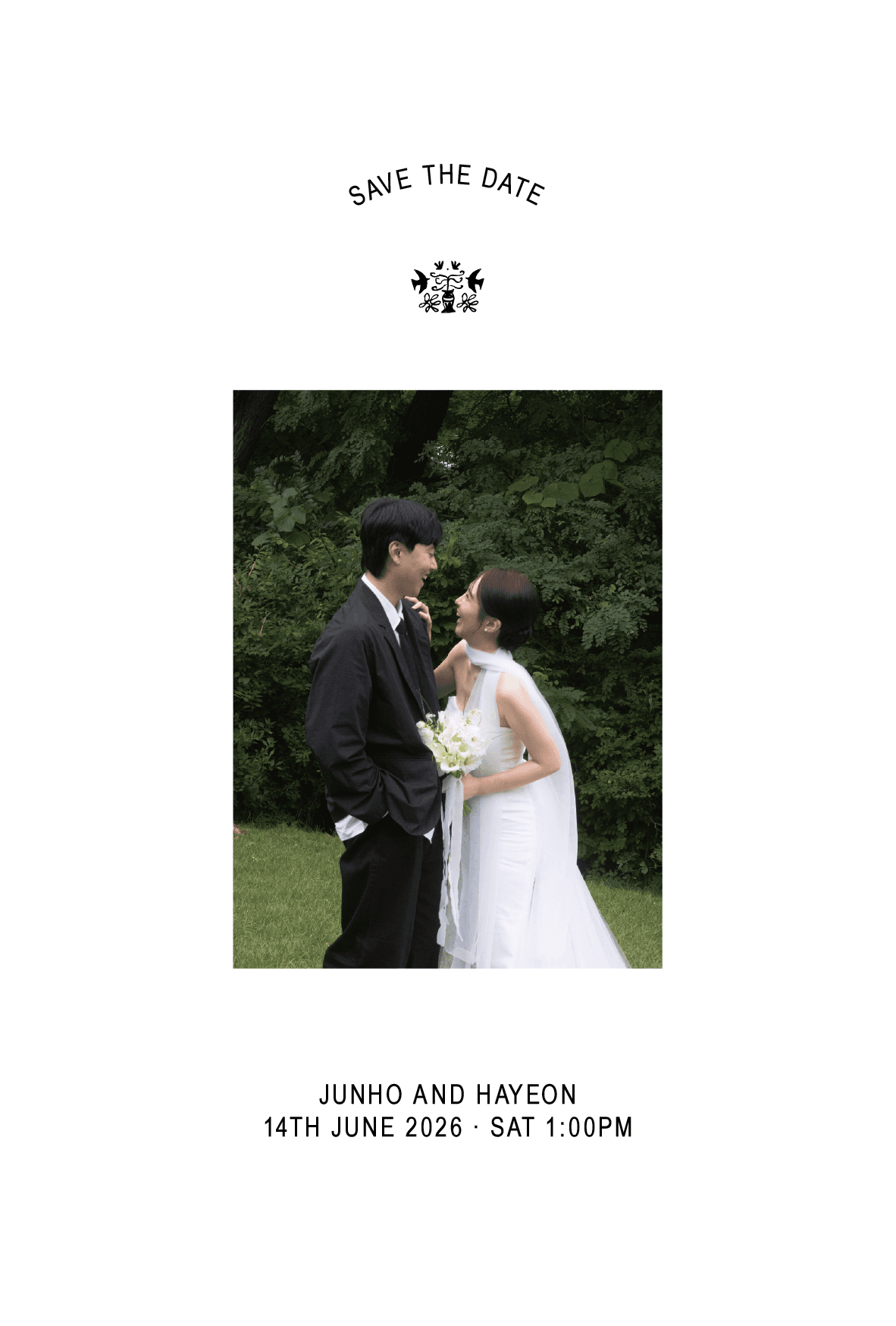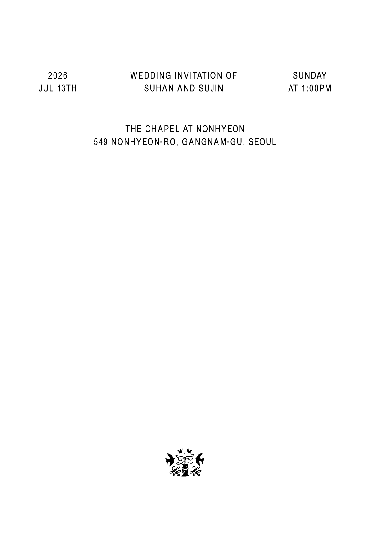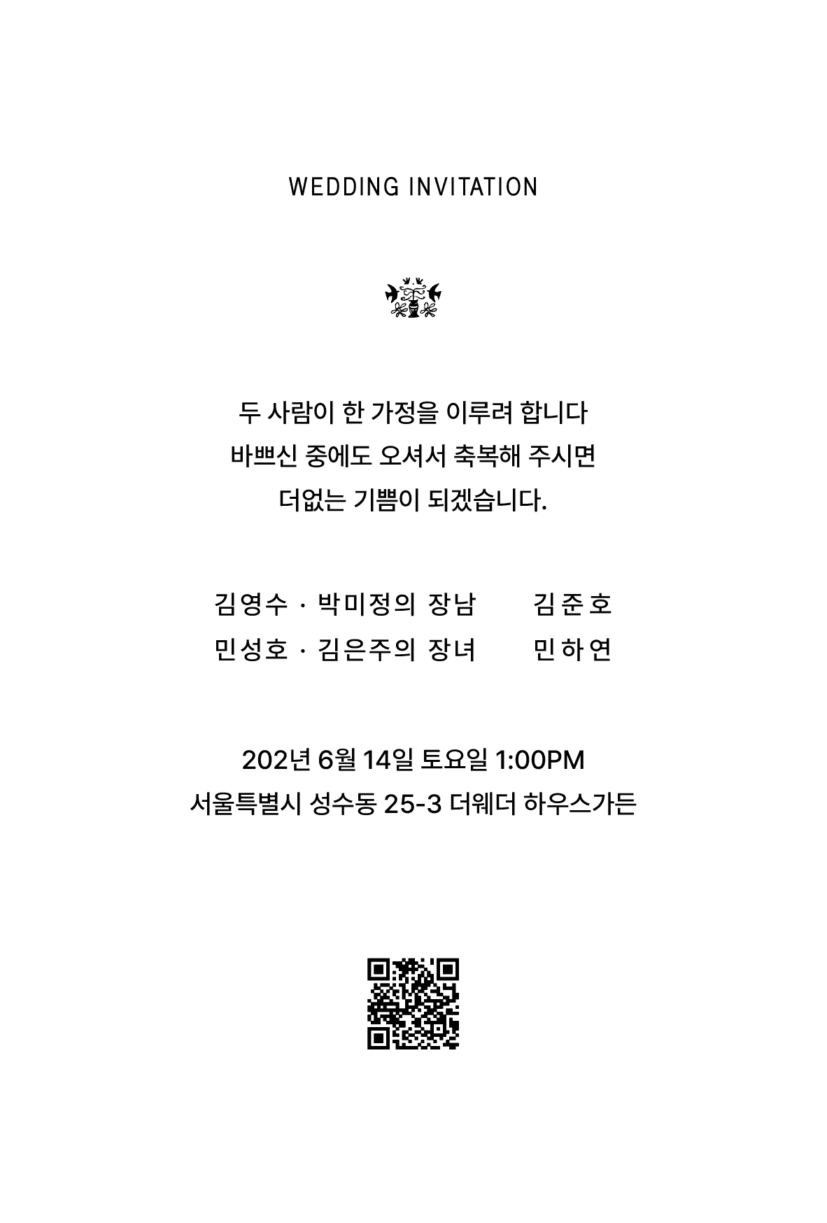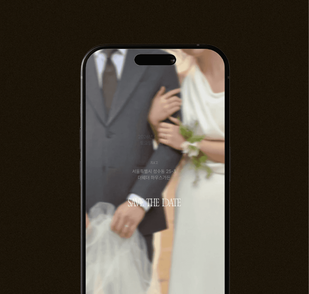 필요한 정보만 깔끔하게 담은 더웨더9 기본 엽서형 청첩장 입니다.