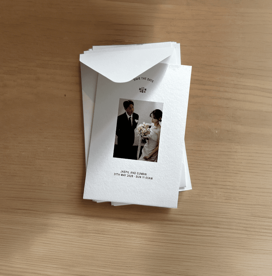 필요한 정보만 깔끔하게 담은 엽서형 청첩장 입니다.